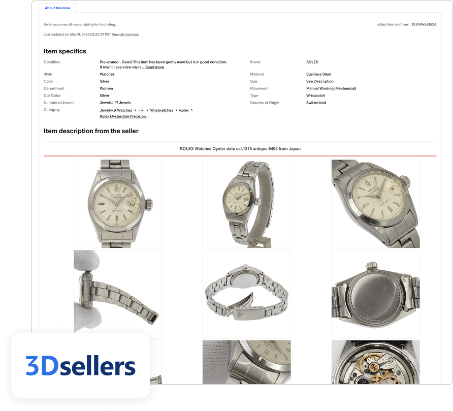 If creating detailed listings for every product sounds time-consuming, 3Dsellers' AI listing tools can help. When you create and manage your eBay listings with 3Dsellers, you can use the integrated AI tools to generate optimized product listings with detailed descriptions using just a URL, product identifier, or even a photo of the item. This feature allows sellers to create accurate, professional listings at scale without spending time writing each one manually.