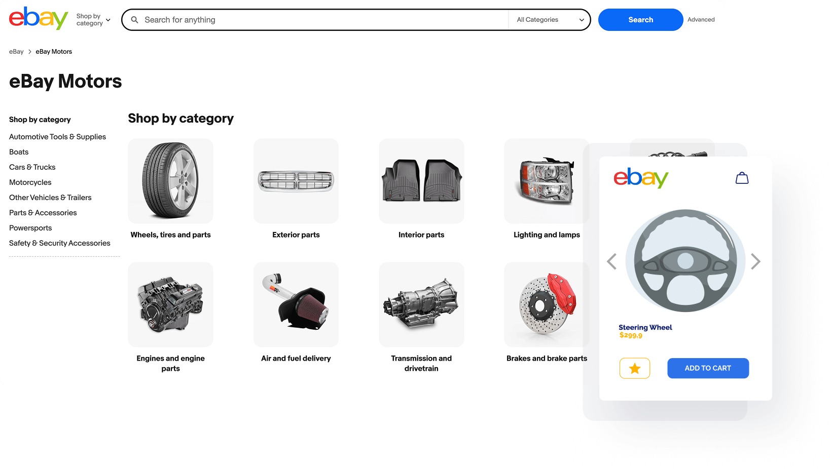 eBay Motors has established itself as the leading online marketplace for automotive parts and accessories, with billions of dollars in annual sales. The Parts & Accessories category remains the platform's largest segment by far, attracting a whopping 11 million buyers every month. For sellers, the platform offers unmatched access to customers actively searching for automotive parts and accessories, since many buyers habitually shop on eBay Motors thanks to its user-friendly fitment system and competitive pricing.