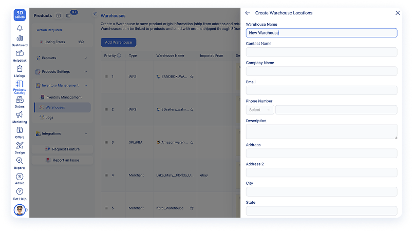 3Dsellers lets you define multiple warehouse locations for a given SKU, specify a bin location for that SKU in each warehouse, and even set up warehouse prioritization to determine which stock moves first. 3Dsellers is one of the few eBay selling managers that offers sellers such extensive warehouse prioritization capabilities, giving you more granular control over your stock, minimizing picking errors, and simplifying your warehouse's fulfillment workflows.
