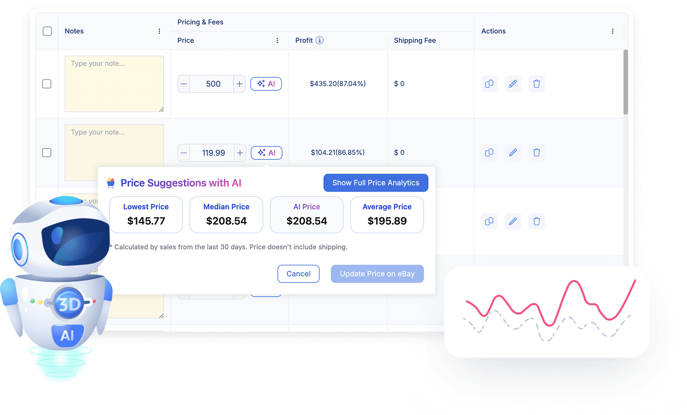 You can now set floor and ceiling prices when using AI Suggested Pricing or performing bulk price edits. This ensures prices are never adjusted below your minimum or above your maximum, helping you protect your profit margins while still benefiting from AI-powered pricing optimization. Use this feature to:
