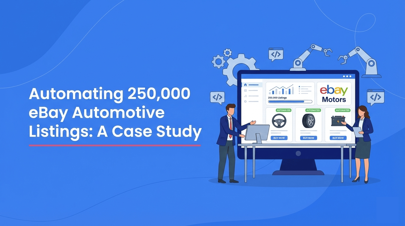 On September 20, 2025, we received a complex inquiry from Dominic Vaillancourt, founder of a high-volume automotive e-commerce operation based in Montreal, Canada. Dominic managed over 250,000 SKUs across a headless Shopify store and eBay Motors Canada, specializing in tires, wheels, and auto parts. His operation was at a breaking point—a failed CSV import had corrupted their entire eBay catalog structure, misaligning SKUs with Product IDs and threatening their business model, while manual spreadsheet workflows from 25+ suppliers created bottlenecks that delayed new product launches by 2-3 days.